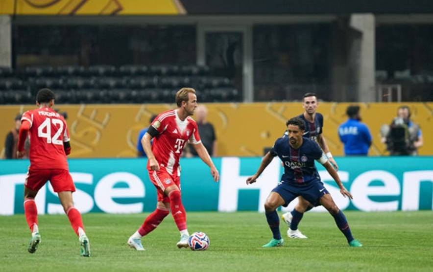 比赛第78分钟,凯恩中圈带球反击被抢断,杜埃劲射破门打破了僵局,巴黎圣日耳曼1-0领先拜仁慕尼黑。